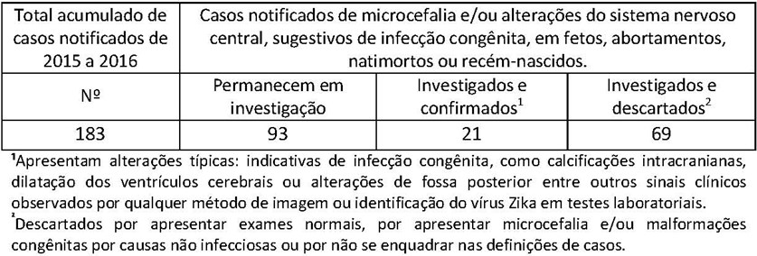 Todos os casos estão sendo investigados. Vale ressaltar que a microcefalia pode ser causada por diversos agentes infecciosos além do vírus zika, tais como sífilis, toxoplasmose, rubéola, citomegalovírus e herpes viral.